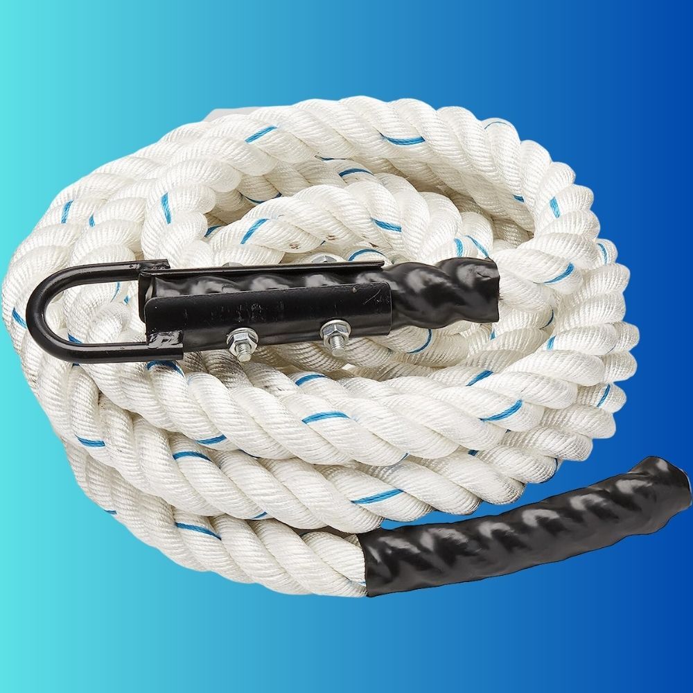 The rope features a heavy-duty metal eye hook for easy attachment, and is perfect for building upper body strength, improving grip, burning fat, and testing endurance.