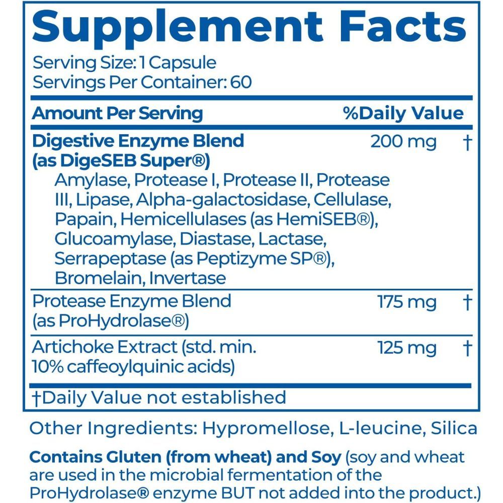 The Prohydrolase helps break down proteins to reduce gas and bloating, while Artichoke Extract supports the small intestine and liver to help the body naturally flush out toxins and break down fats.