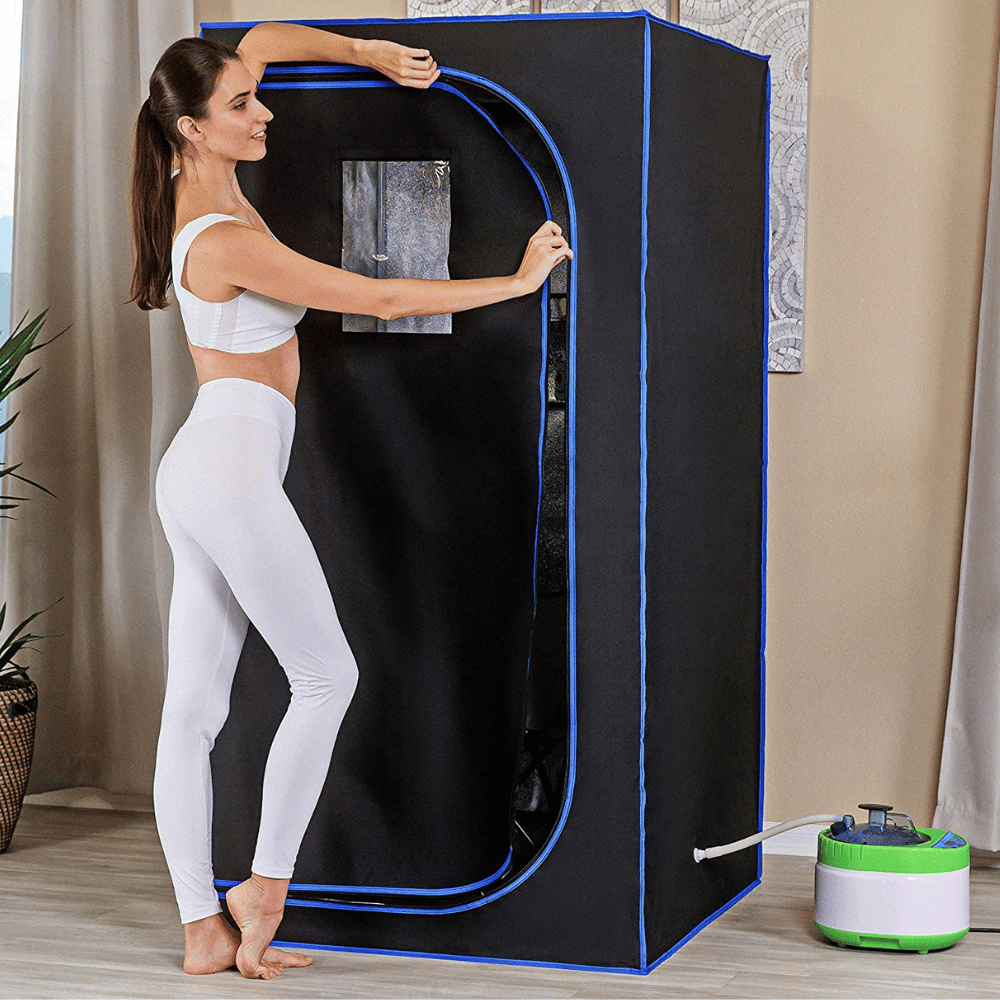 The Smartmak Portable Sauna Tent is perfect for relieving stress, improving your mood, and detoxifying your body. It is available in several colors and is designed to be foldable and pop up, making it easy to store away when not in use. It also comes with a storage bag to save even more space.